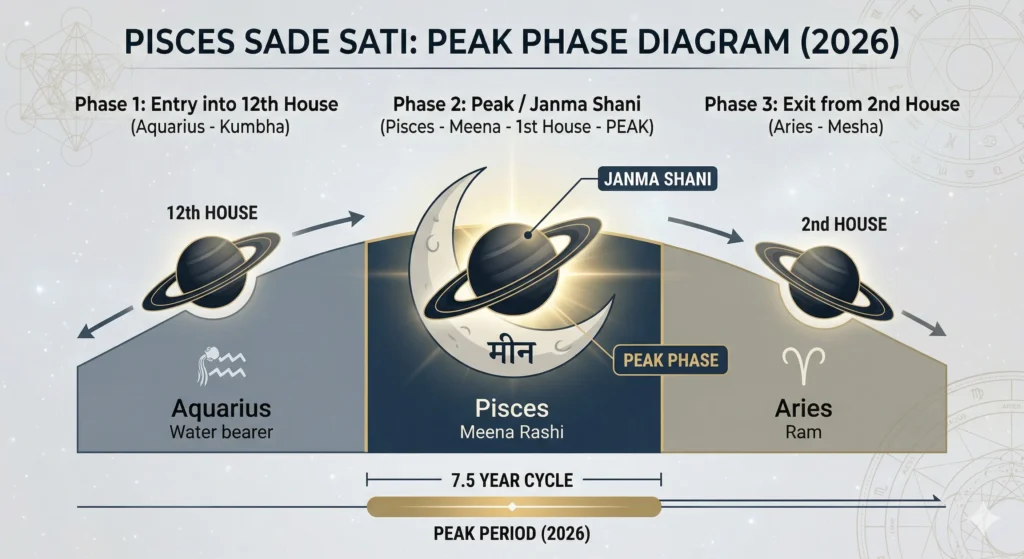 - Peak Sade Sati (Janma Shani) – most intense phase
